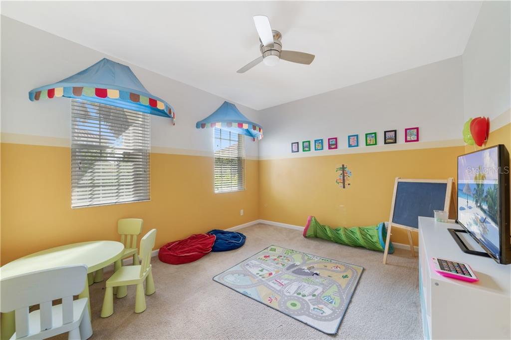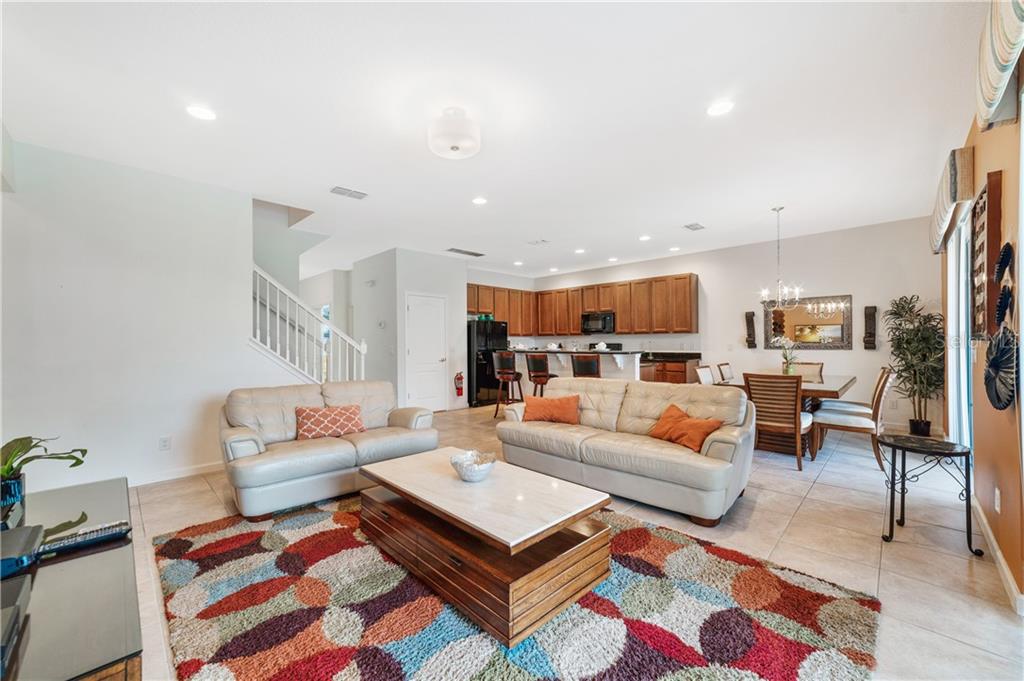 Beautiful fully furnished resort vacation pool home for immediate purchase. 6 large bedrooms and 5 baths. Turnkey ready with the great floor plan Coconut Palm by Park Square Homes. Great loft upstairs with game/media room & theme rooms. Granite kitchen/bathroom countertops, all kitchen appliances, laundry room, screened covered heated pool, covered lanai, and southwest facing pool. Professionally decorated furniture package including leather furniture. Gated entrances. The HOA fully maintains the lawns, common areas and kid-friendly areas.